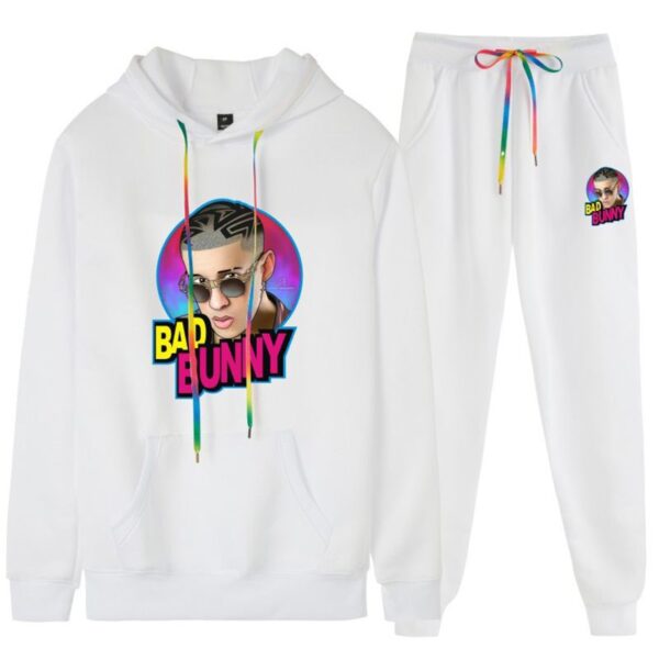 Bad Bunny White Tracksuit – Kangaroo Pocket Edition